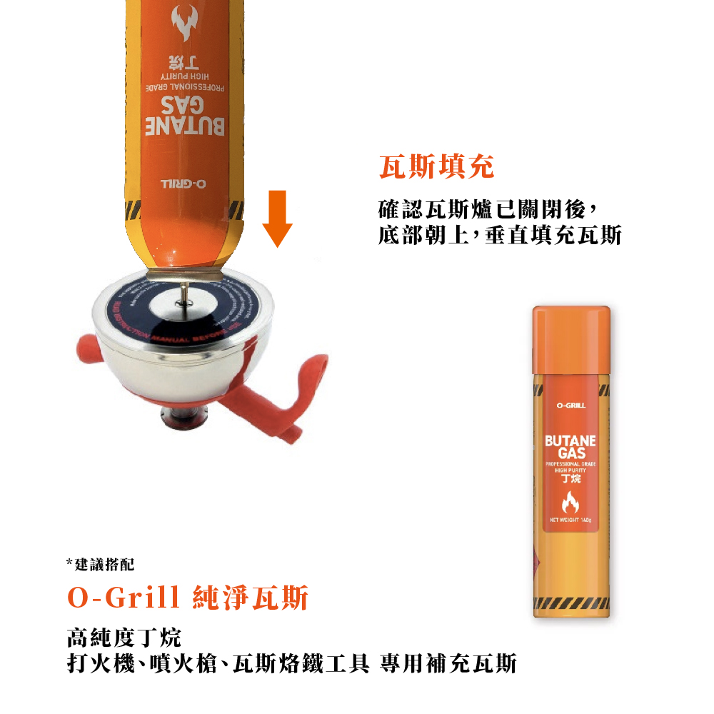 ※ 建議補充 O-Grill 純淨瓦斯,可避免油管阻塞,並享有業界最長保固18個月。